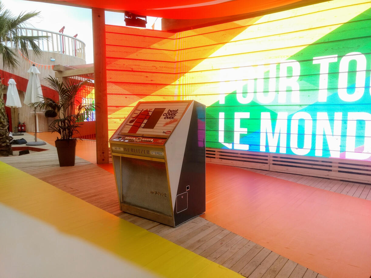 For Set Creative and Google, we converted a Wurlitzer jukebox into a voting kiosk that allowed guests to influence the soundtrack of the Cannes Lions beach. Interfacing to the Coolux Pandoras Box media server, custom video content was triggered on all LED screens.